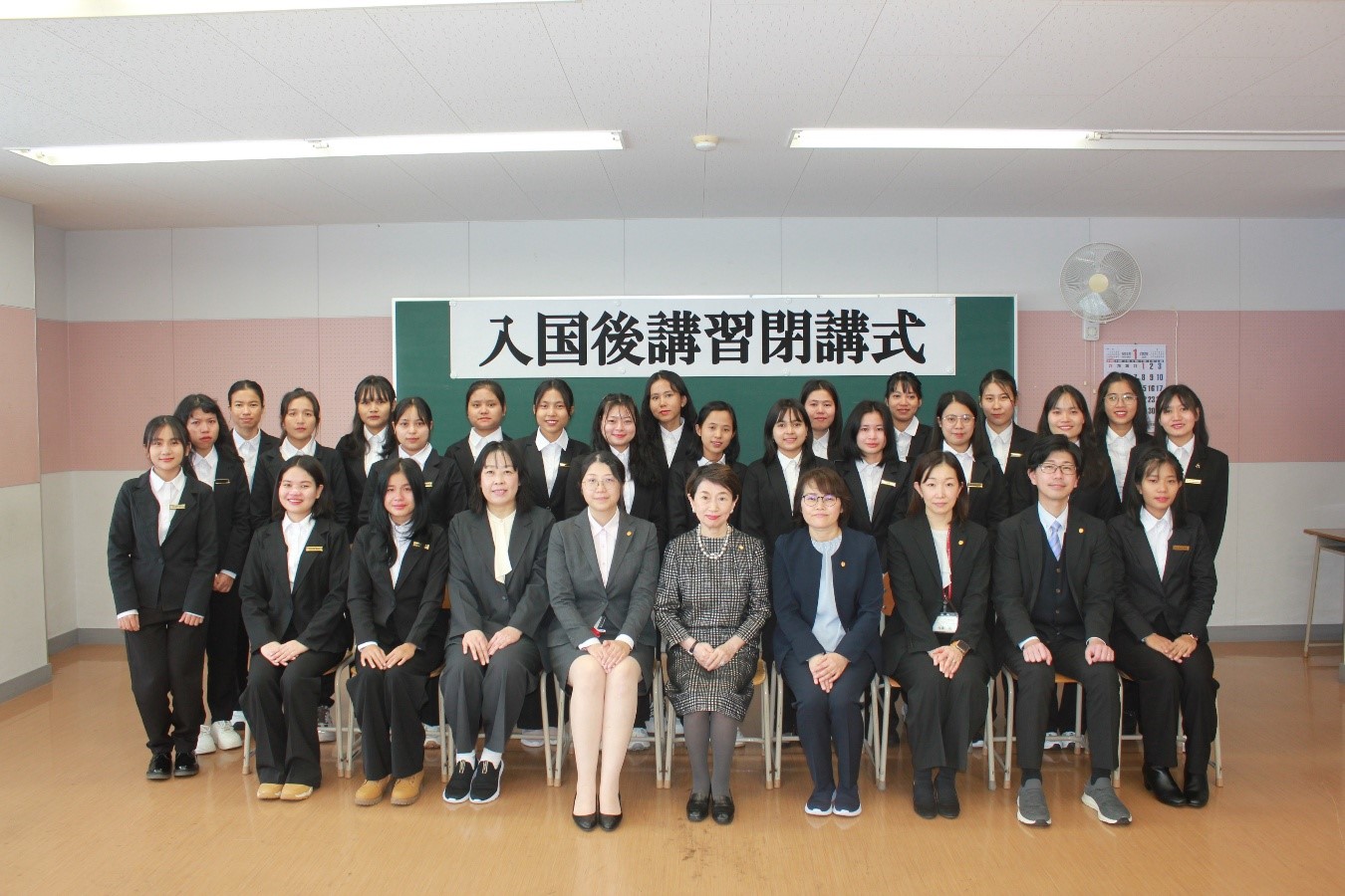 | ミャンマーからの介護技能実習生25人の閉講式を執り行いました。 |