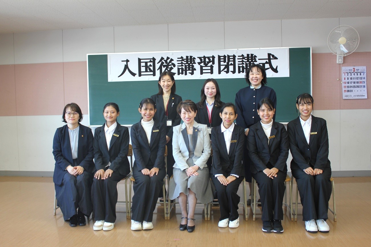 1月29日(水)に社会福祉法人日本介護事業団のミャンマーからの介護技能実習生4人の閉講式を執り行いました。 |